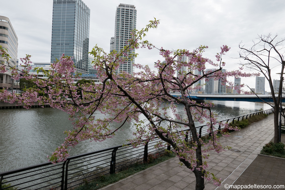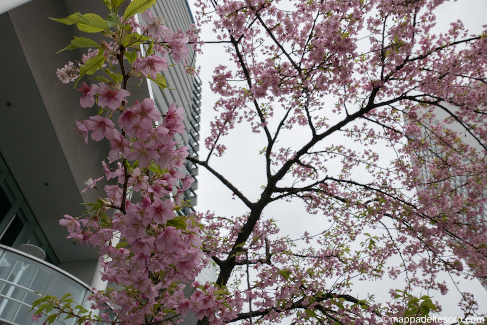 横浜の日産グローバル本社ギャラリー前では、河津桜(?)と思われる早咲きの桜が満開でした。
