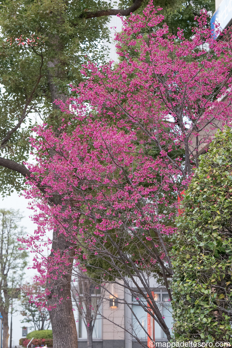午後は用事のあった神保町付近で、満開の寒緋桜を見ることができました。