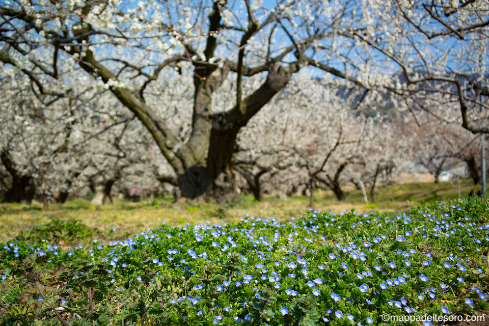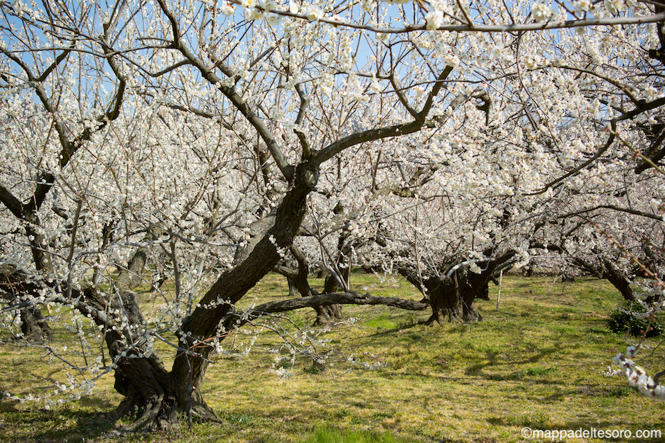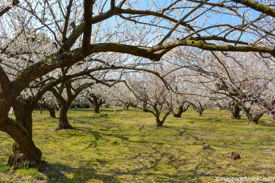 駅から出てしばらく歩くと、梅林が見えてきます。